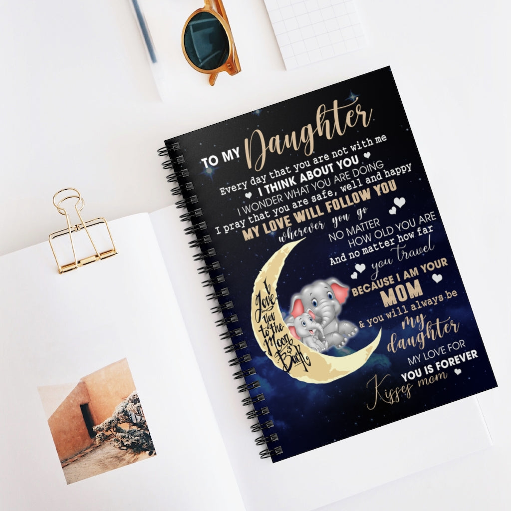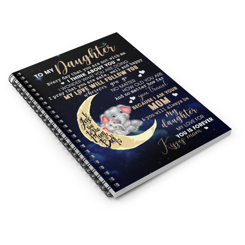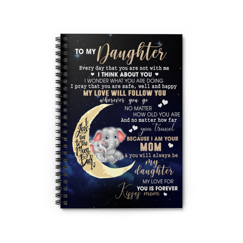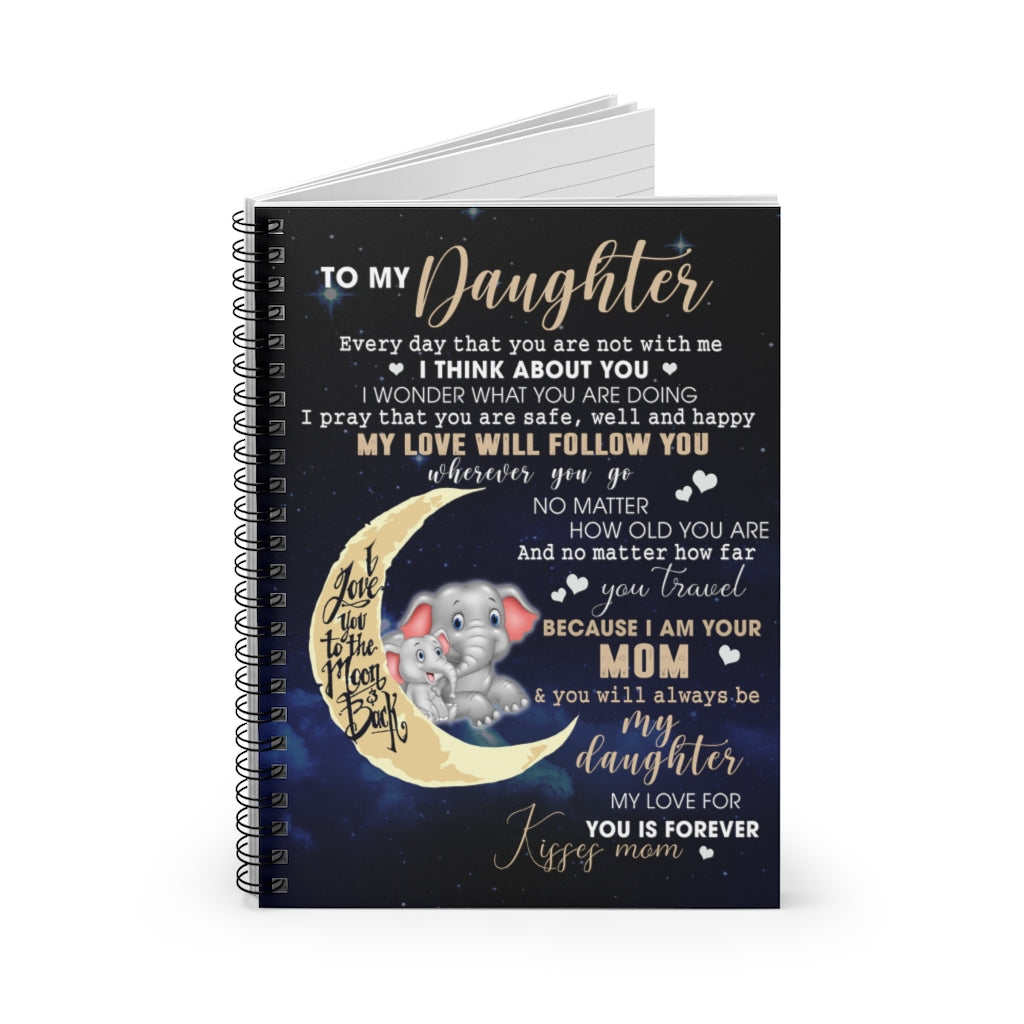 Spiral Notebook Funny Elephant Mom to My Daughter for Birthday Xmas - Elephant Mom to My Daughter I Love You to The Moon and Back Ruled Line