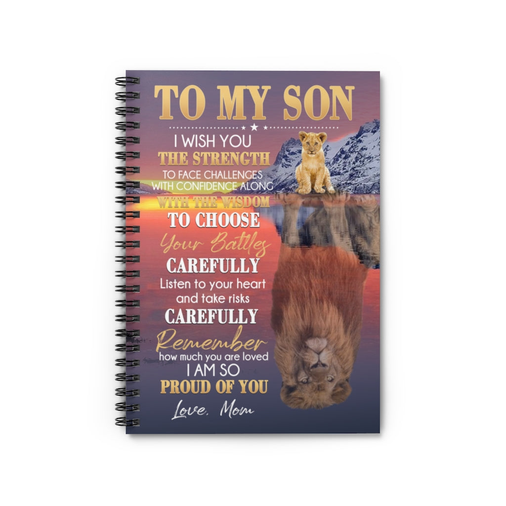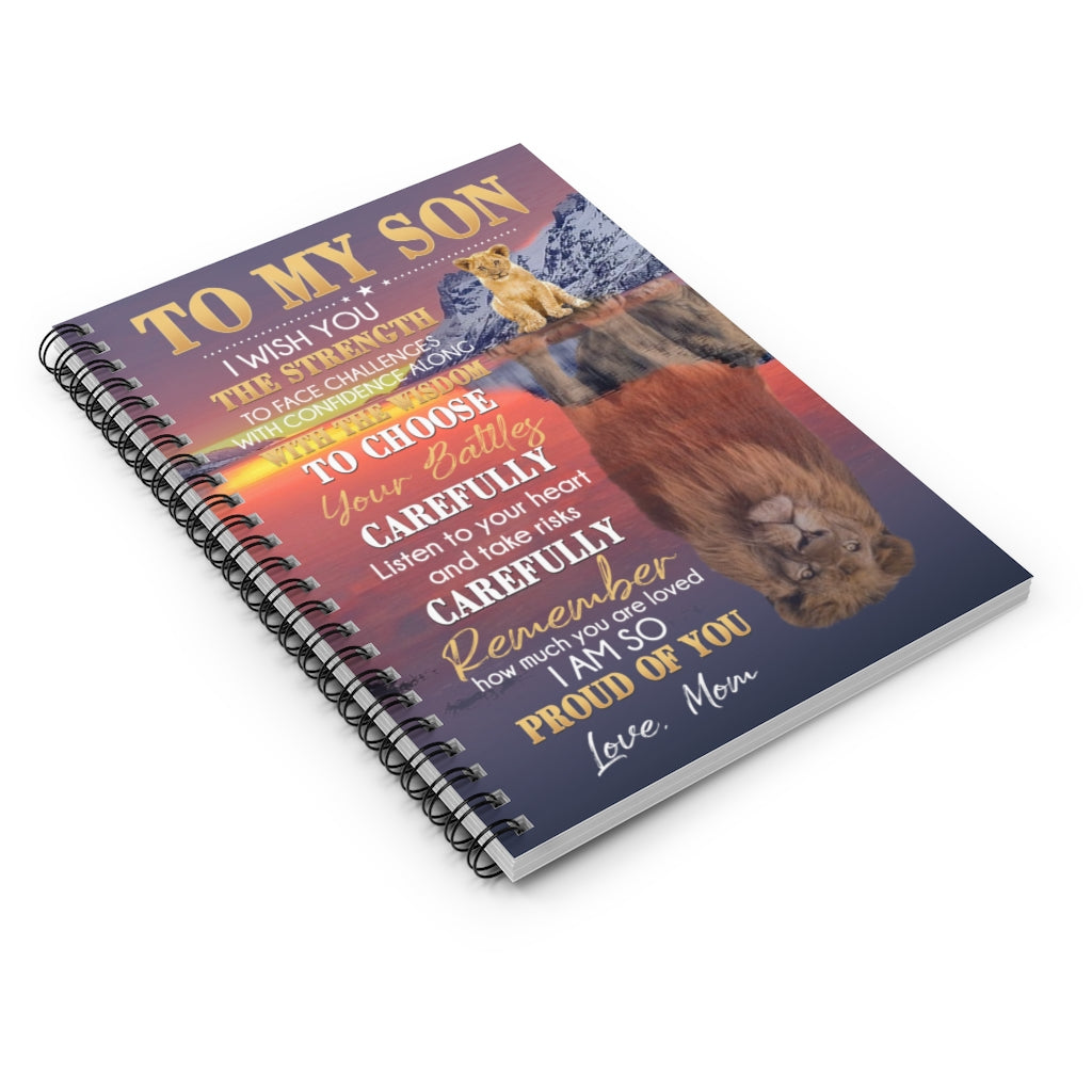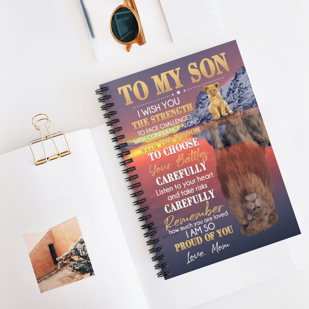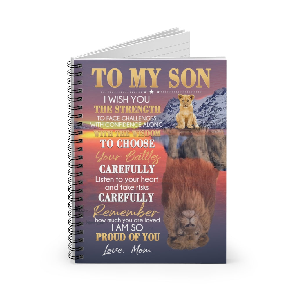 Spiral Notebook Meaningful Quote from Mom to My Son I Wish You The Strength Lion Gift Family Unisex Awesome On Birthday Ruled Line