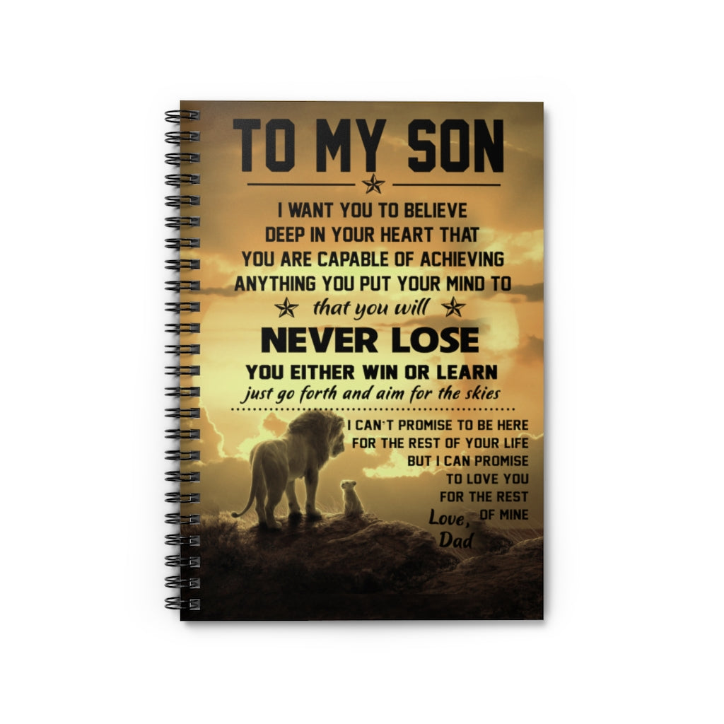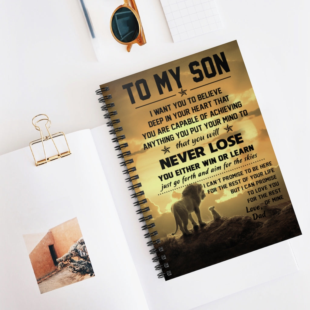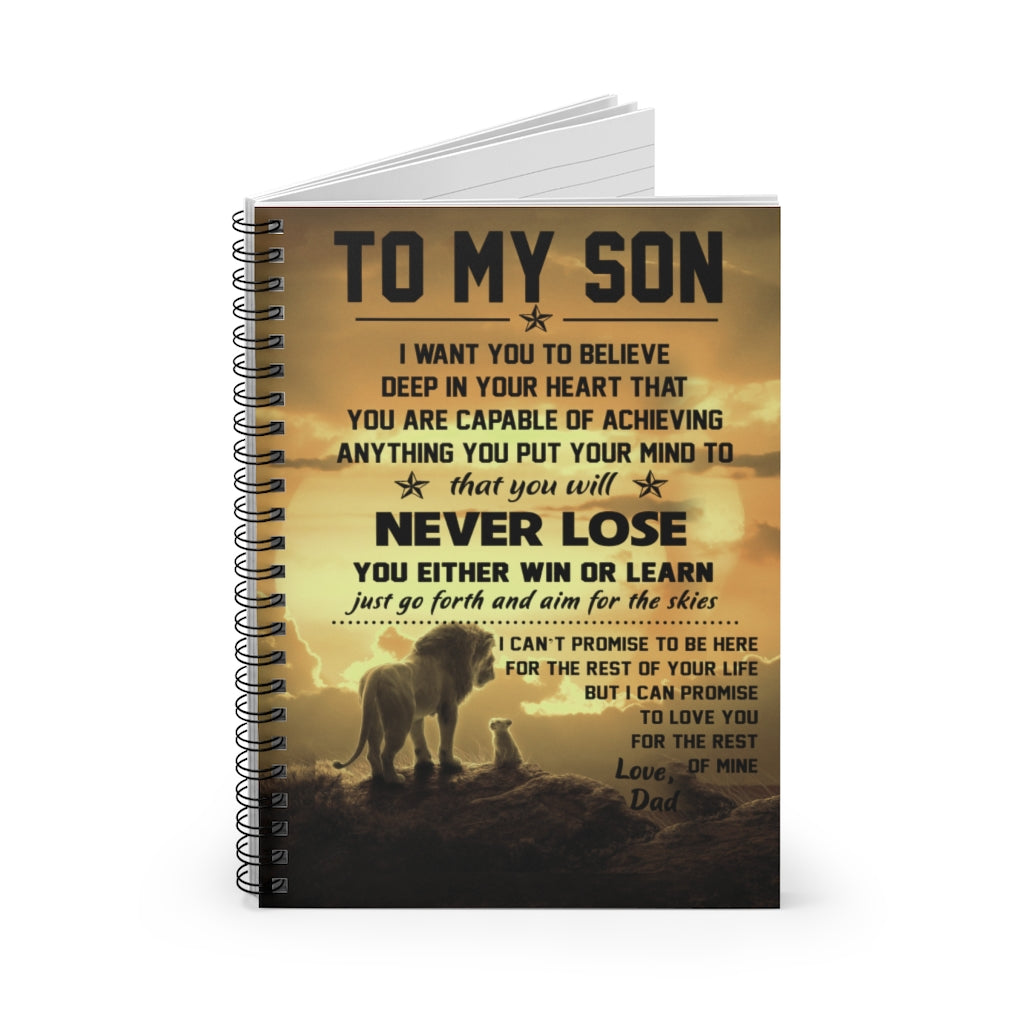 Spiral Notebook Meaningful Quote The Lion King Dad to My Son Promise to Love You Family Friend Gift Unisex, Awesome Birthday Perfect Happy Birthday Gift Ruled Line