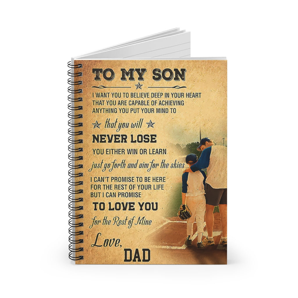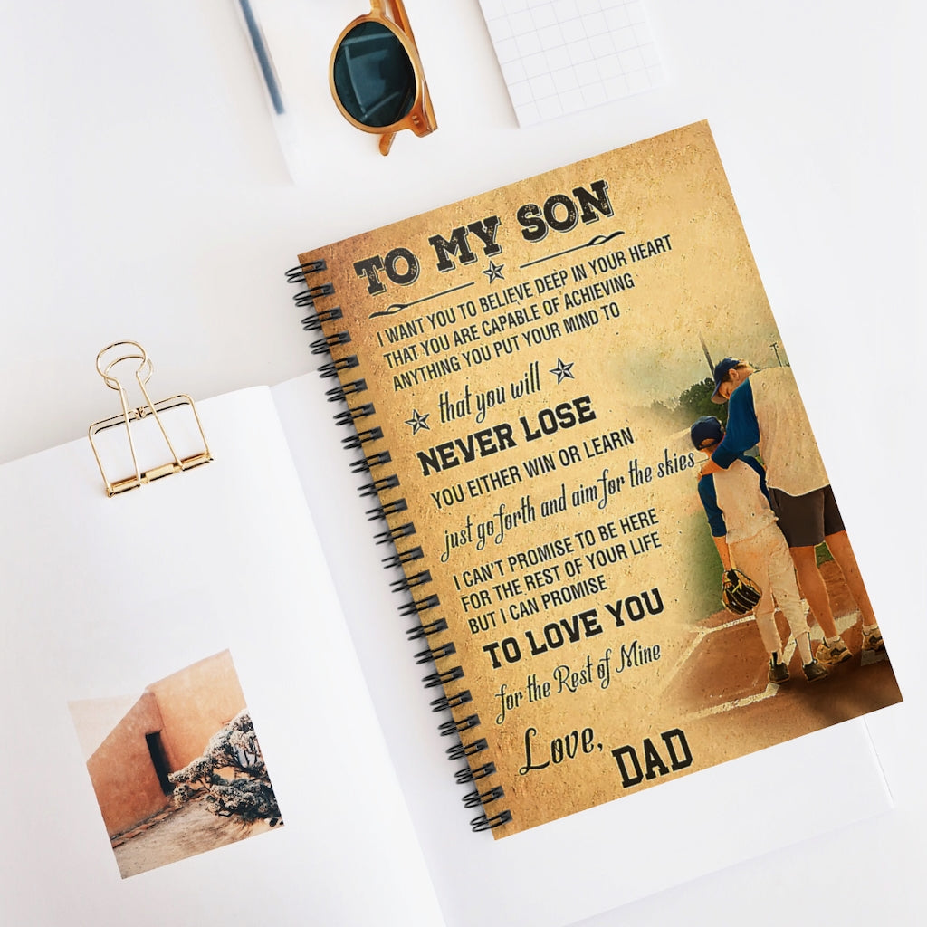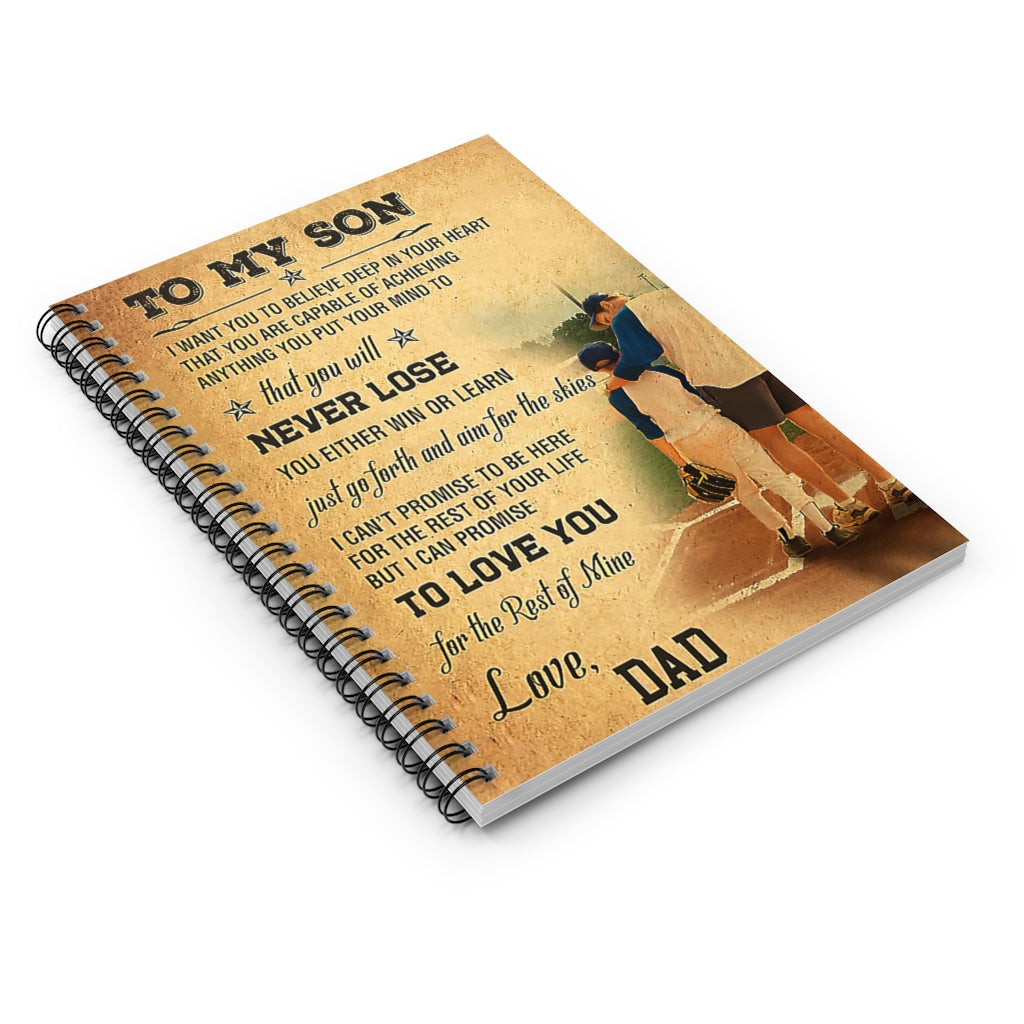 Spiral Notebook - Ruled Line Baseball To My Son Vertical Poster New Parents College Ruled Paper 118 Sheets Gift Ideas