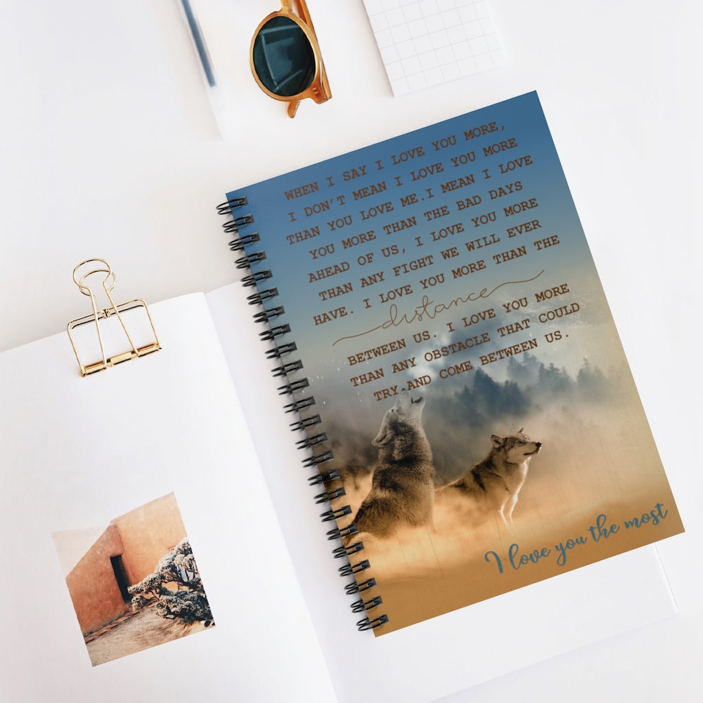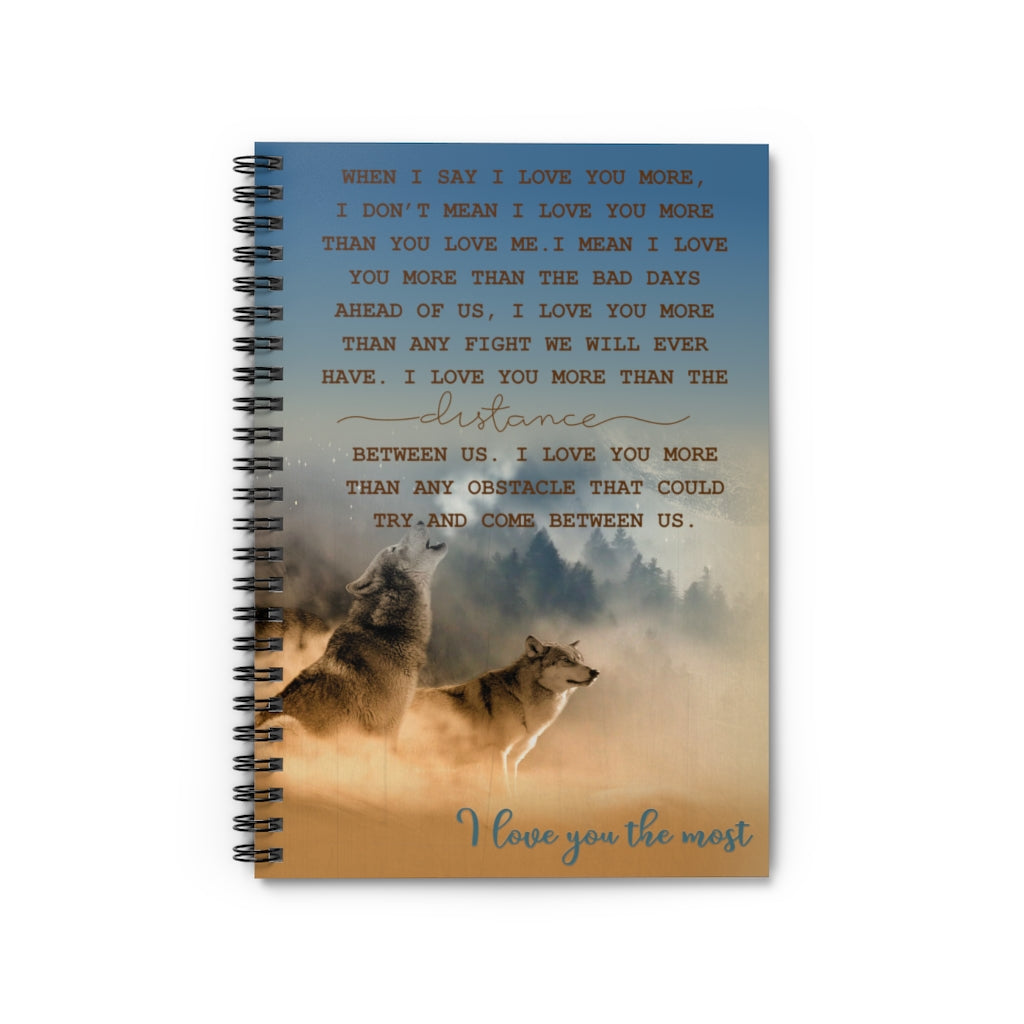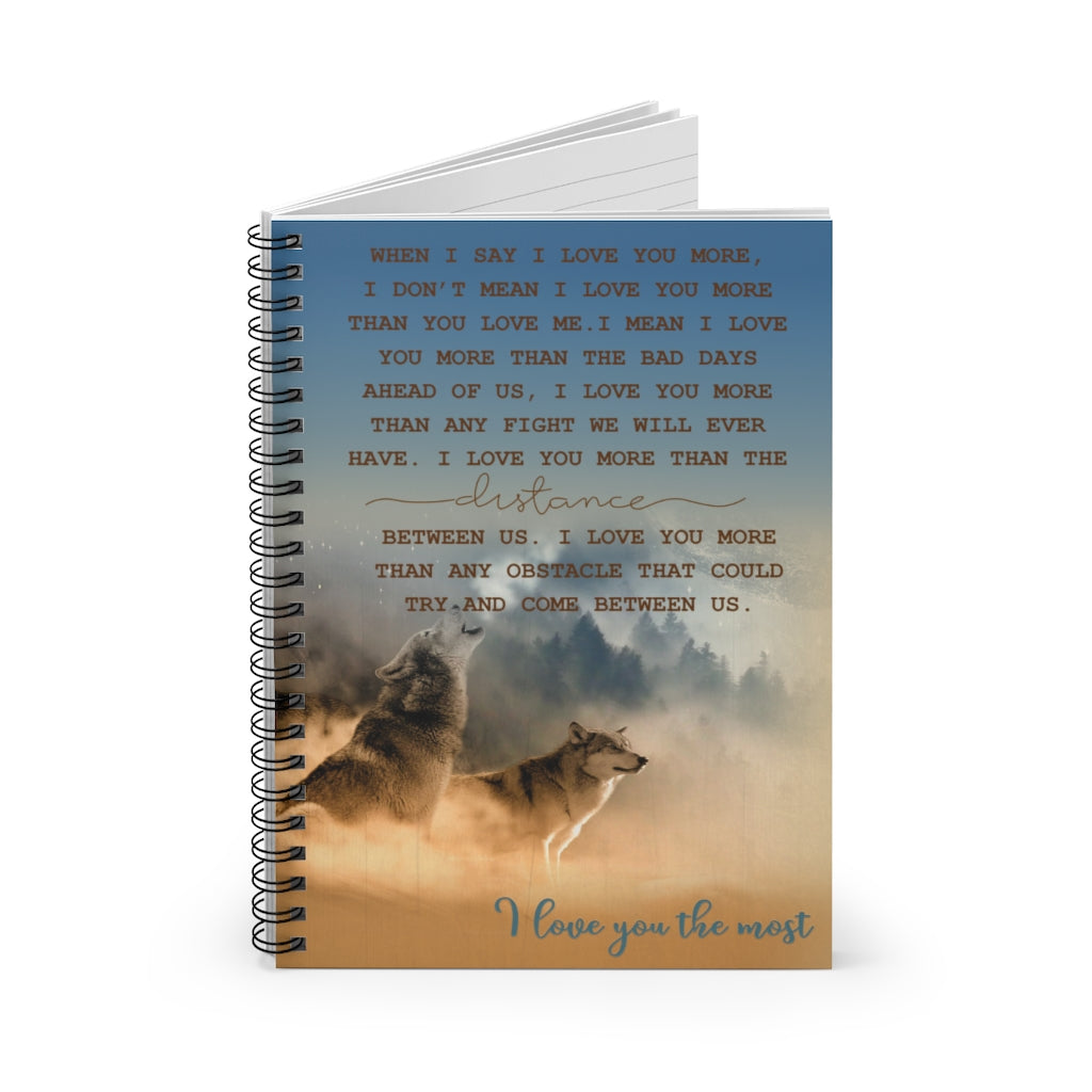 Spiral Notebook - Ruled Line- Funny Wolf I Love You Gifts - Wolf I Love You The Most When I Say I Love You More New Parents Gift Ideas