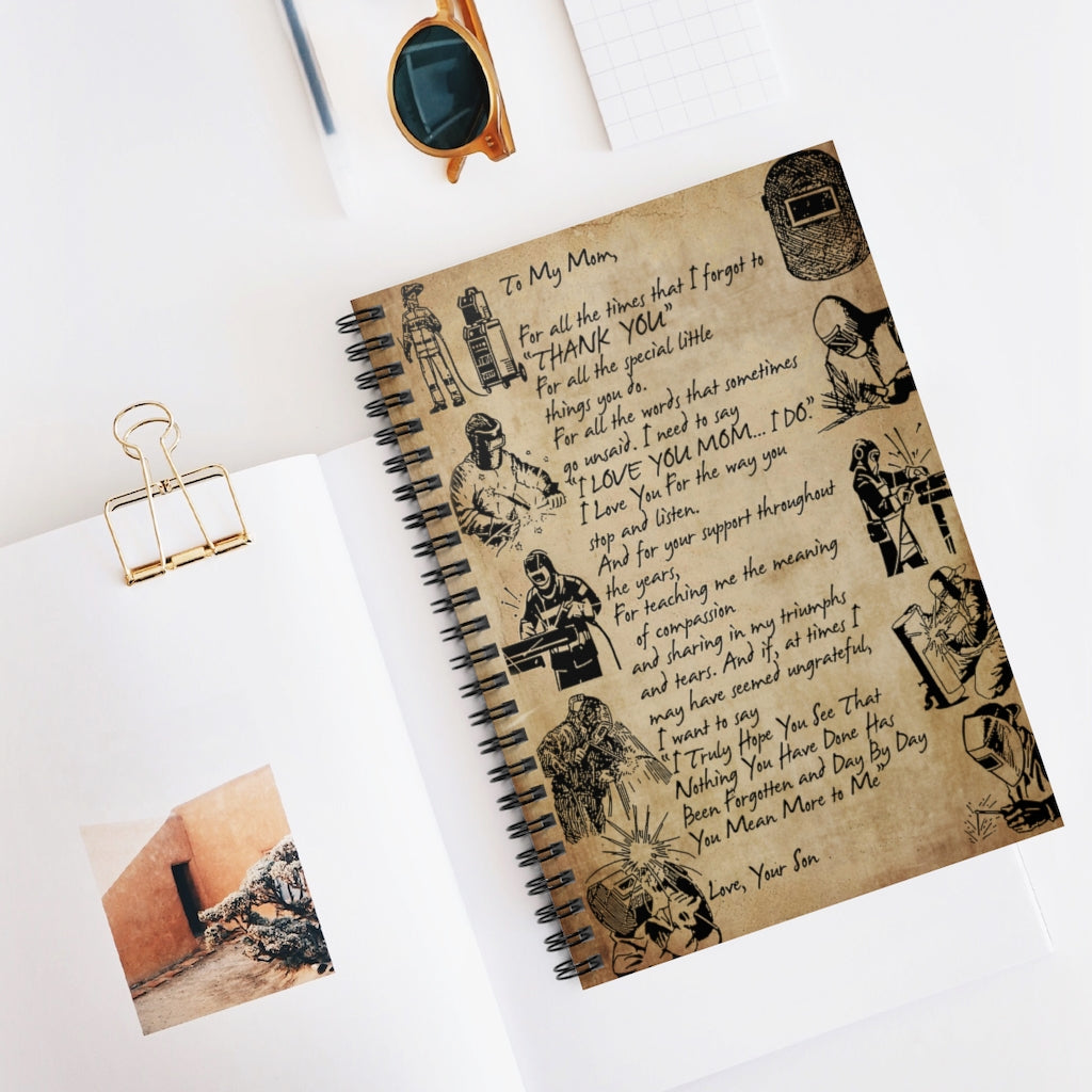 Spiral Notebook - Ruled Line To My Mom Welder Son Family Meaningful Quote School Smart Spiral Composit Cover Spiral Organization Book Inspirational Ideas