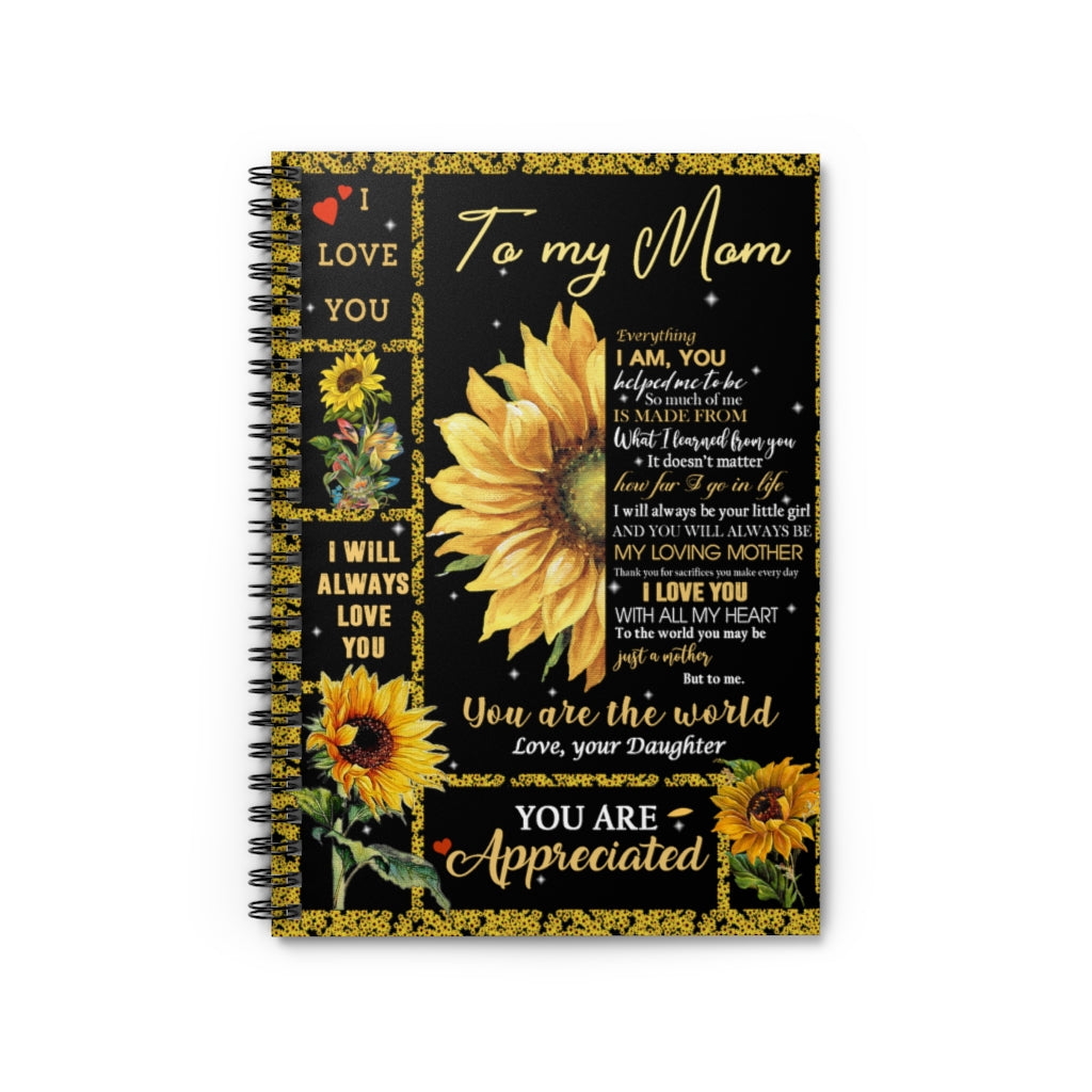 Spiral Notebook Sunflower To My Mom Everything I Am You Helped Me To Be So Much Of Me Is Made Ruled Line